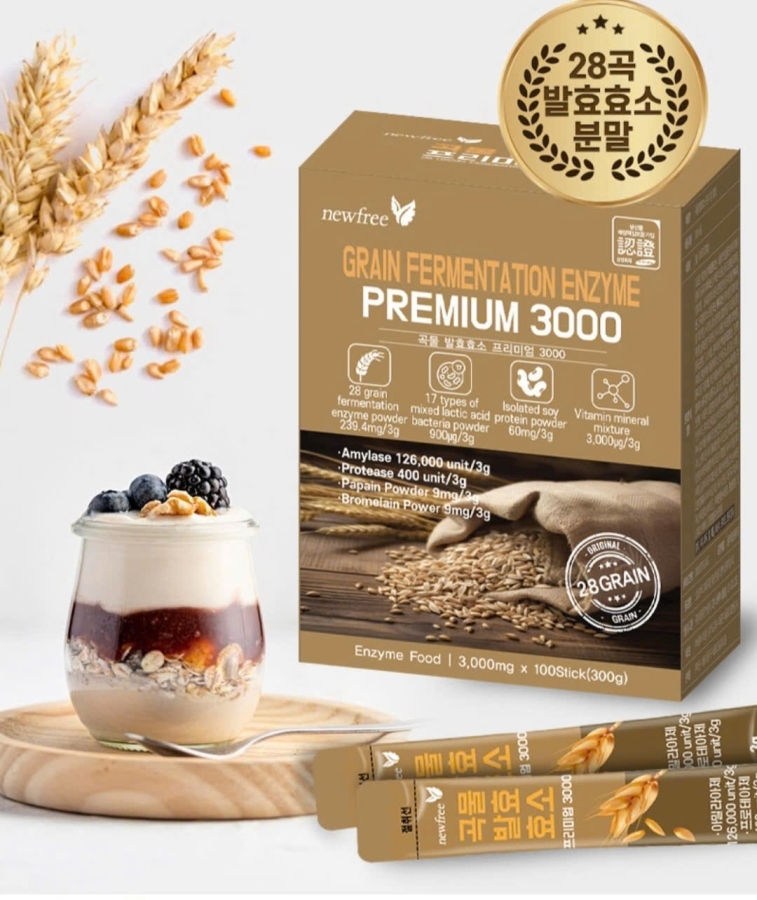 ENZYM BỘT ĐẠM LÊN MEN TỪ 28 LOẠI NGŨ CỐC - PREMIUM 3000 – Công thức đặc biệt từ Hàn Quốc, giúp tăng cường trao đổi chất, hỗ trợ tiêu hóa và thúc đẩy quá trình giảm cân một cách an toàn, hiệu quả.